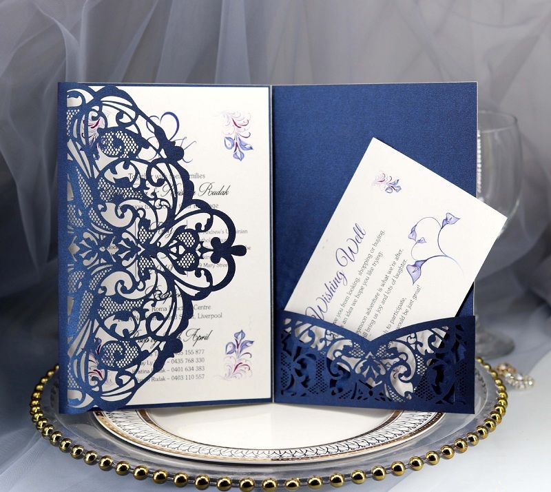 High Quality Navy Blue Hollow Laser Cut Wedding Bridal Invitation
