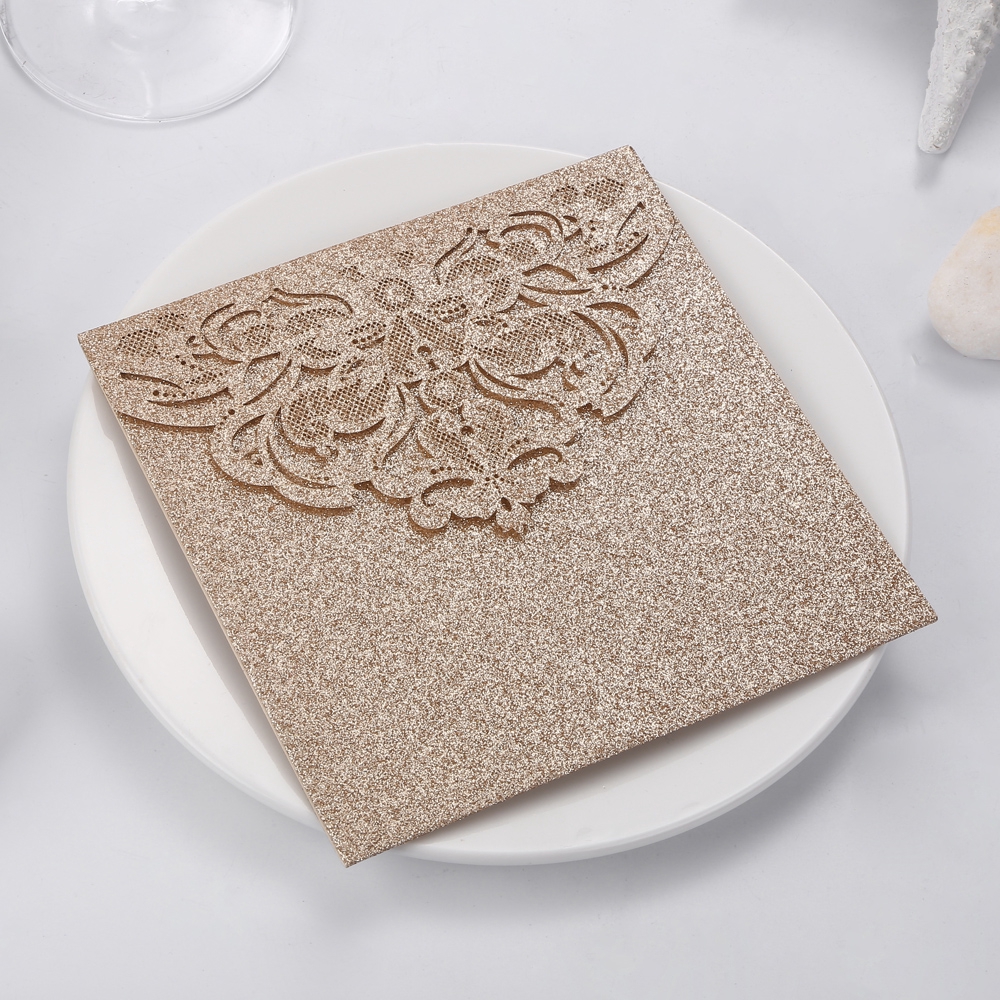 Rose Design Glitter Paper Laser Cut Wholesale Wedding Invitation