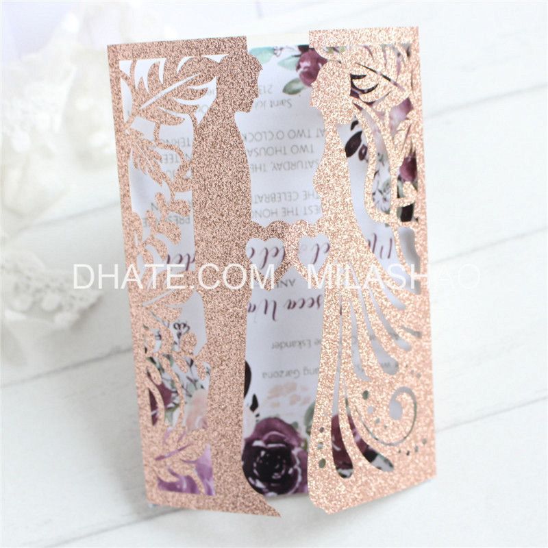 Glittery Rose Gold Wedding Invitations Laser Cutting Couple